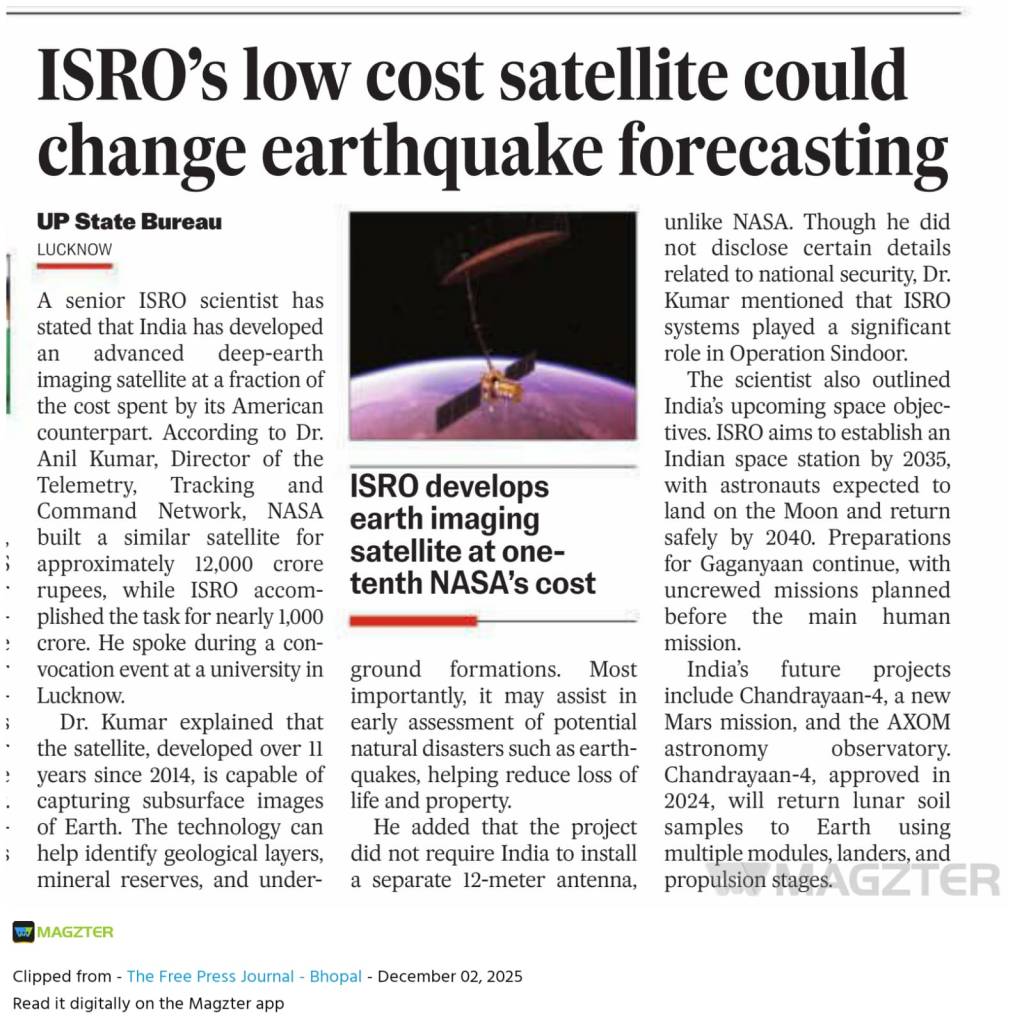 The question for The Free Press Journal is thus what role a satellite can essay in this landscape. In a statement in 2021, ISRO had said "NISAR would provide a means of disentangling highly spatial and temporally complex processes ranging from ecosystem disturbances to ice sheet collapses and natural hazards including earthquakes, tsunamis, volcanoes and landslides." This means NISAR will help scientists better piece together the intricate processes implicated in earthquakes — processes that are distributed over some area and happen over some time. Neither NISAR nor the S-band radar alone can forecast earthquakes.